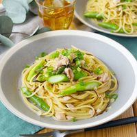 ベーコン巻きは、アスパラ料理のなかでも定番中の定番です。アスパラは油との相性が抜群。簡単に作れるうえ食べごたえがあり、おかずにもおつまみにもなるひと品ですよ。彩りもよいので、お弁当に入れると華やかになりますね。