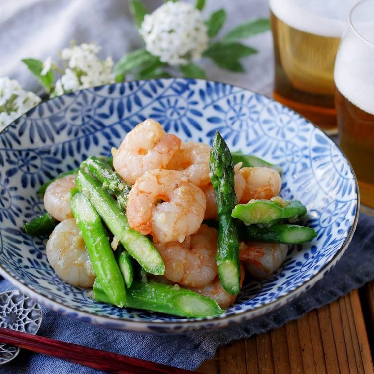 - アスパラはシャキシャキ食感とみずみずしさを生かすために、生のまま炒める