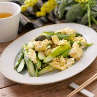 アスパラとさつま揚げの長さをそろえると、見栄えよく仕上がります。アスパラが細い場合は3~4cm長さの斜め切りにして炒めてください。アスパラは余熱でも火が通るので、シャキシャキ感の食感を残すためにも炒めすぎに注意してください。