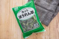 大人気のカットほうれん草。収穫地で凍結処理を行ってから日本へ出荷されるので、ほうれん草の新鮮な味わいがキープされているのがうれしいポイントです。すでに細かくカットされているため、そのまま鍋やフライパンに入れることで、料理にかける時間を短縮できますよ♪