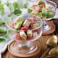 アボカドは種と皮を取り除き、8等分のくし切りにします。
