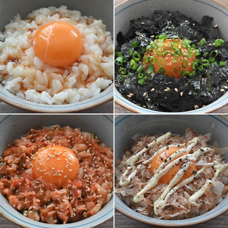 1. 風味豊か。かつおぶしのせ卵かけご飯