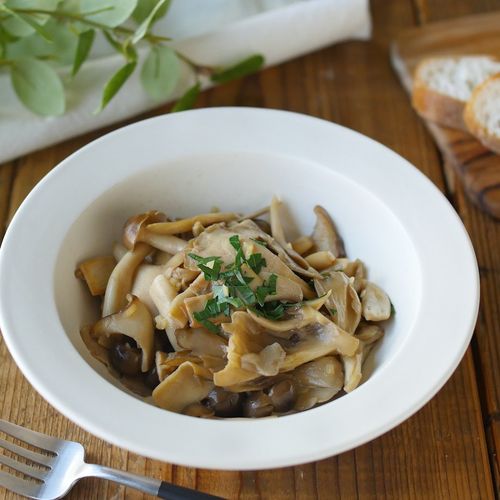 3種のきのこをオリーブオイルやにんにく、酒と一緒に加熱して、風味抜群なひと品に仕上げます。冷蔵で2~3日保存ができるので、忙しいときに便利なレシピです。サラダやパスタのトッピングとしても活用できますよ。