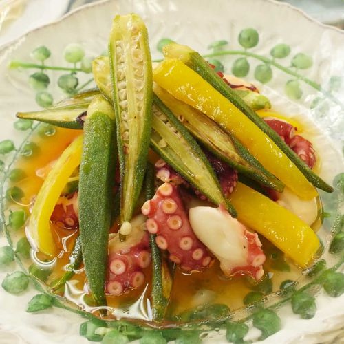 4. サッパリと。焼きオクラとたこのさっぱりマリネ