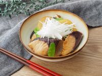 落とし蓋を取り、3分ほど中火で煮つめて完成です。皿に盛り、お好みでしょうがの千切りを添えて召し上がれ。