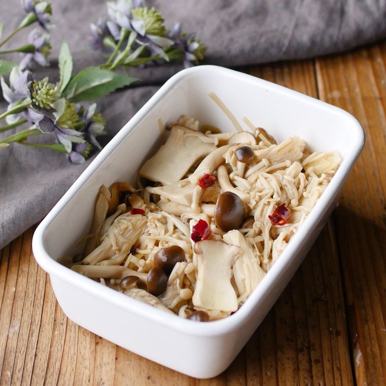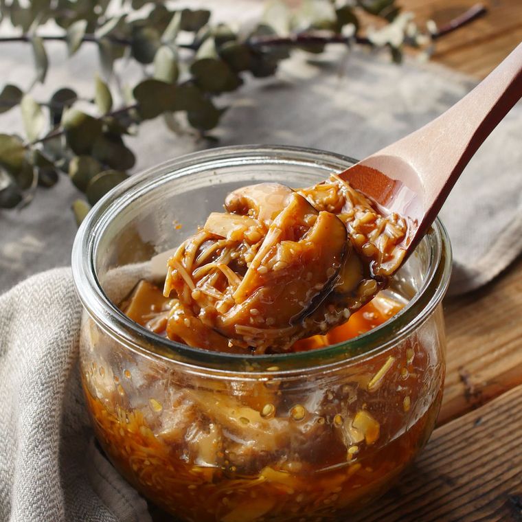 なめたけはえのきを調味料で煮詰めるとできるので、意外にも簡単に自家製できるメニュー。ごはんにはもちろん、パスタにも合うため、食卓で活躍すること間違いありません。酢を仕上げに入れると、味が引き締まり日持ちもしやすくなります。