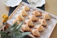 クッキングシートを敷いた天板に並べて卵黄を塗り、200℃に予熱したオーブンで12〜13分焼きます。
