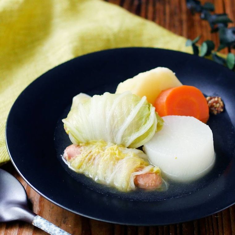 - じゃがいもとにんじんを加熱するときは、牛乳が吹きこぼれないようにキッチンペーパーを1枚落し蓋かわりに。また、ラップの端を少しだけあけておきます。