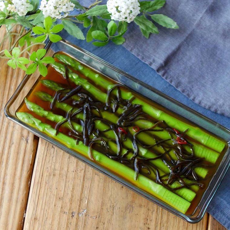 アスパラガスとエリンギの香りを楽しむ、ガーリック風味のパスタ。しょうゆベースで日本人の舌に合いやすい味わいで、ふんわりと香るバターの風味がたまりません!さっと作れて忙しい日のランチに重宝しますよ。