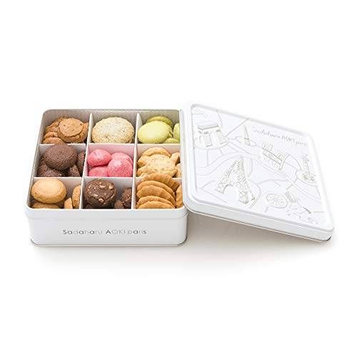 白とシルバーを基調としたパリの街並みが描かれた缶が特徴の商品です。こだわりの製法で作り上げた9種類の焼き菓子を楽しむことができます。ひと口サイズのクッキーなので、読書や仕事の合間などに気軽に糖分補給できそうですね。