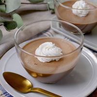冷蔵庫で3時間程冷やし固めます。固まったら生クリーム、ココアパウダーをトッピングして完成です。