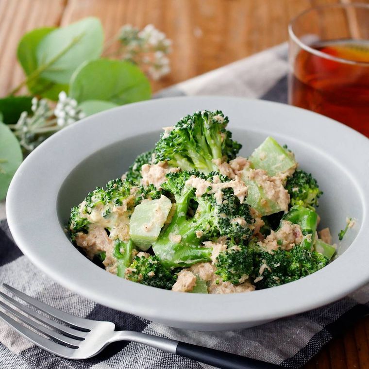 小房に分けたブロッコリーをレンチンし、ツナ缶や塩こんぶ、ごま油で和える簡単スピード副菜。作り置きして平日のひと品にもぴったりですよ。ツナと塩こんぶの旨味が食欲をそそる、やみつきレシピです。