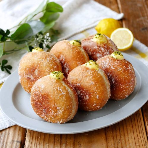 イタリアの伝統菓子、ボンボローニ。現地ではバール(カフェ)の定番メニューとして親しまれている国民的スイーツです。ふわっとしたブリオッシュ生地にたっぷりとクリームが入れたドーナツのような食べ物で、日本では “生ドーナツ” の名で親しまれることも。