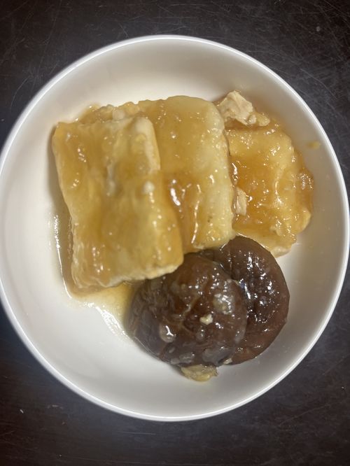 フライパンにごま油を引いて熱し、しいたけ、豆腐を全体に焼き色が付いて火が通るまで焼き、容器に移します。
