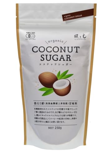 天然のココヤシ花序液(アルコール化防止のため、東南アジアでは有機マンゴスチン果皮液を微量使用)からつくられる無漂白の砂糖。日本有機農業生産団体中央会から日本のJAS認定を受けている商品です。 やわらかな甘みと旨みが特徴で、ミルクやヨーグルトと相性ばっちり。カレーや煮物の隠し味にも重宝します。 水を加えて煮詰めると、パンケーキのシロップにも大活躍!