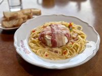 粗挽きの牛肉をトマトや赤ワインを使ったソースで煮込み、濃厚な味わいに仕立てた本格ボロネーゼ。肉の旨みと食感が活きており、高い満足感を得られます。
