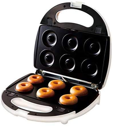 コンパクトなサイズで使いやすい、「HOME SWAN(ホームスワン)」の焼きドーナツメーカー。生地を流して蓋をするだけで、直径5cmほどのドーナツが同時に7個作れます。フッ素樹脂加工のプレートにより、汚れが落としやすいのも特徴。ドーナツパーティーにいかがでしょうか。