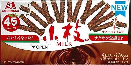 焙煎アーモンドと2種類のパフが入った、小枝型のかわいいチョコレート菓子。4本ずつ小分けになっているため、ちょっと甘いものがほしいときに重宝します。サクサクの歯ごたえやアーモンドのつぶつぶ感が魅力で、個包装であることも好評です。