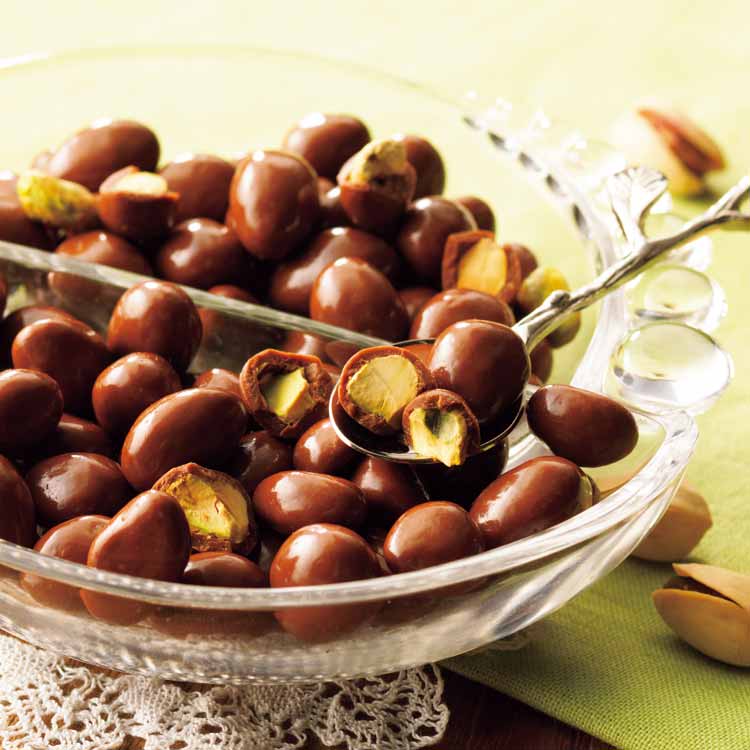 鮮やかな色合いのピスタチオをチョコレートで包んだ、見た目にも華やかな商品です。ピスタチオ特有のコクとほのかな甘みがチョコと合わさり、奥行きのある味わいを生み出します。口に運ぶたびに広がる上品な余韻が印象的で、ゆったり味わいたい時間のお供におすすめのナッツチョコレートです。