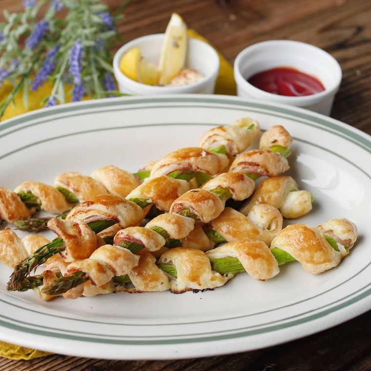 パイ生地のあみ目模様がおしゃれでかわいらしいひと品。ケチャップを塗って、ウインナーソーセージを巻き付けるだけの簡単レシピです。パリッジュワッと肉汁あふれるウインナーソーセージがたまりません。パイシートは半解凍にしておくと扱いやすいですよ。