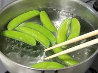 弱火でやさしく蒸すことにより、シワのないふっくらとした仕上がりに。シャキシャキとしていて歯ざわりがよく、噛むほどにスナップエンドウ本来の甘みを楽しめます。