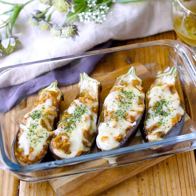調理前のなすをしま目に皮をむくと、見栄えがとてもよいです。紫紺色の皮と白色の実のコントラストがとても美しいのが魅力。炒め物にしたり、揚げたり、油と合わせたりする調理法がおすすめです。皮をむくことで味が染みやすくなるため、揚げ浸しや焼き浸しもおいしいですよ。