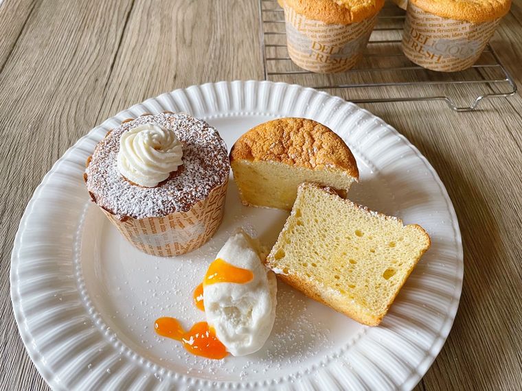 シフォンケーキの型は、アルミ製か紙製がおすすめです。シフォンケーキは生地を型に張り付けて焼き上げるため、シリコン製やテフロン加工がされた型は不向き。膨らんだ生地がしぼんでしまいます。あらかじめ型に油を塗る必要もありません。シリコン製の型を使うときは専用のレシピで作りましょう。