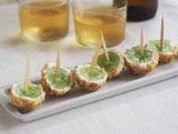 シャインマスカットは斜め半分に切って、片方をひっくり返し、ハートになるように爪楊枝に刺します。