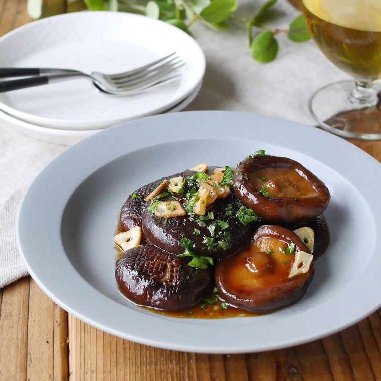 メイン食材しいたけだけで作れるレシピです。バターとにんにく、しょうゆを合わせる、やみつき間違いなしのたれで味付けしましょう。にんにくの香りでしいたけの風味が抑えられ、バターとしょうゆでコクがプラスされます。しいたけがとても食べやすくなりますよ。