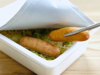 お湯を捨てて液体ソースをまぜると、どことなくうなぎの蒲焼の香りが……!甘辛いたれが焦げたような、ほんのり香ばしい香りに食欲を掻き立てられます。 最後に山椒入りスパイスをかければ完成です。
