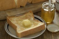 食パンは1枚を4等分の長方形に切る。③を食パンの片面に塗る。