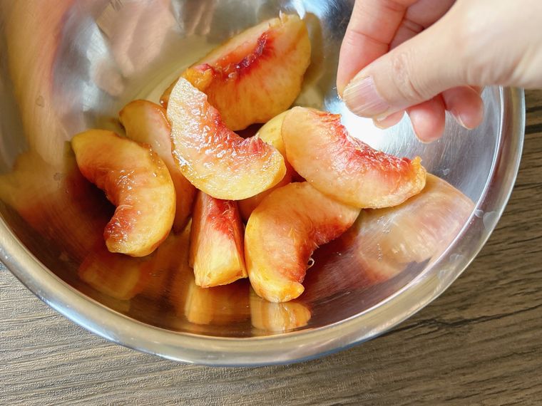 甘い香りとほんのりとした桃の味わいが楽しめるフレーバーウォーターです。桃をいただいたあとに残った皮と種を水に浸すだけ、ととっても簡単に作れますよ。お好みでガムシロップやレモン果汁をプラスするのもおすすめです。