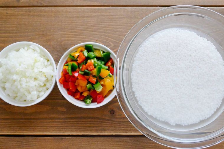 ・米を研いでたっぷりの水(分量外)に30分以上浸す