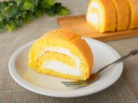 生地の焼き面を綺麗に剥がしてラップの上に置きます。巻き終わりの部分を斜めに切り落としてシロップを打ったら、クリームを手前厚めで巻き終わりを薄めに塗り、手前から巻きます。