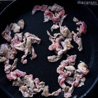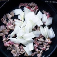 フライパンにサラダ油を引いて熱し、豚肉を入れて中火で5分ほど炒めます。