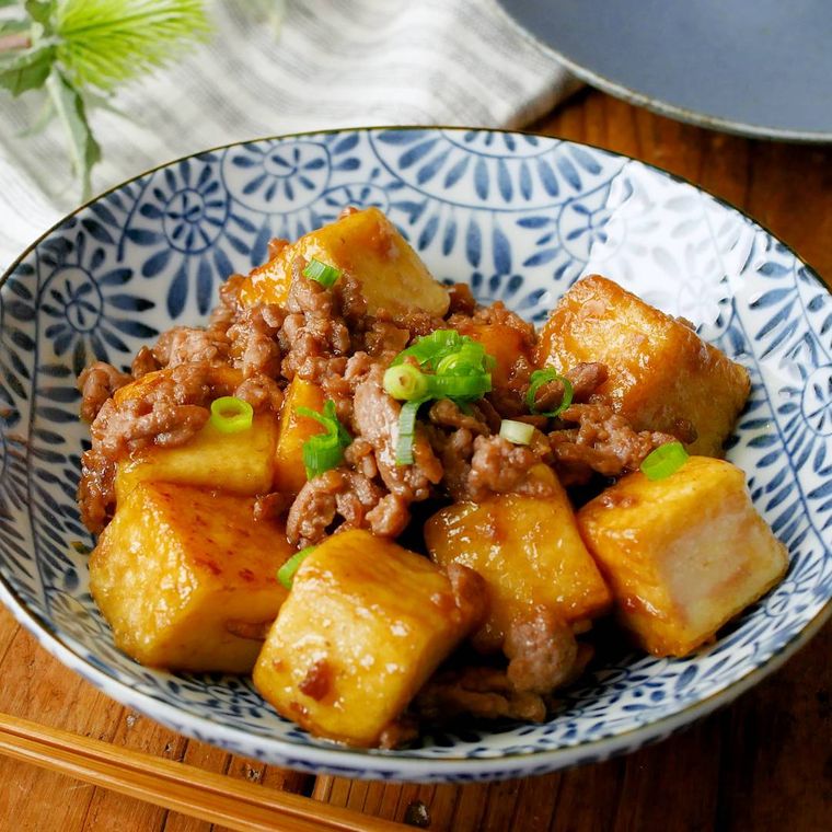 - 厚揚げは相模屋の焼いておいしい絹厚揚げを使用しています。
