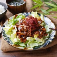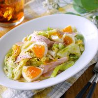 - 細切りにした春キャベツの水分で素材をふっくらと蒸しあげます。