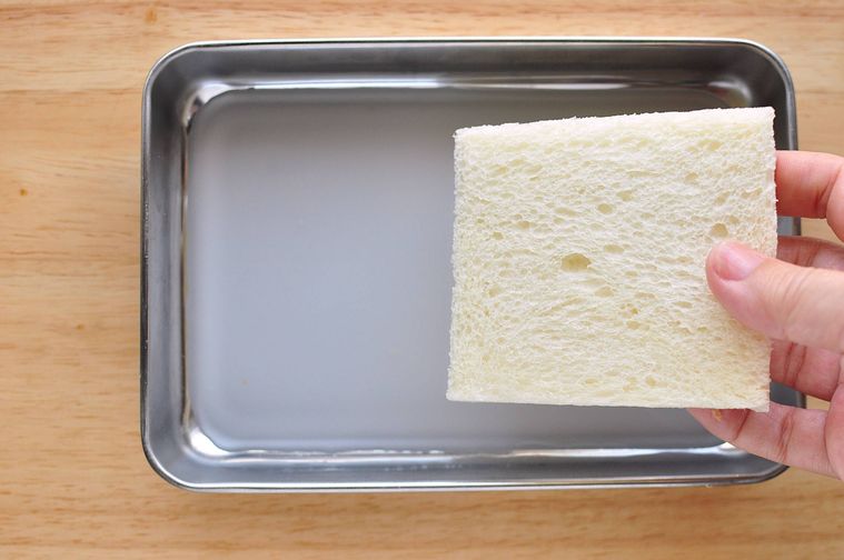 - パンの片面を水溶き片栗粉にサッと浸すことで、パサつきがちな皮がしっとりもちもちに仕上がりますよ。