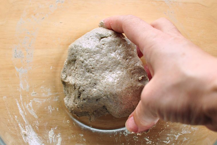 ある程度まとまってきたら手で混ぜ合わせ、サラダ油を加えて軽くこねます。