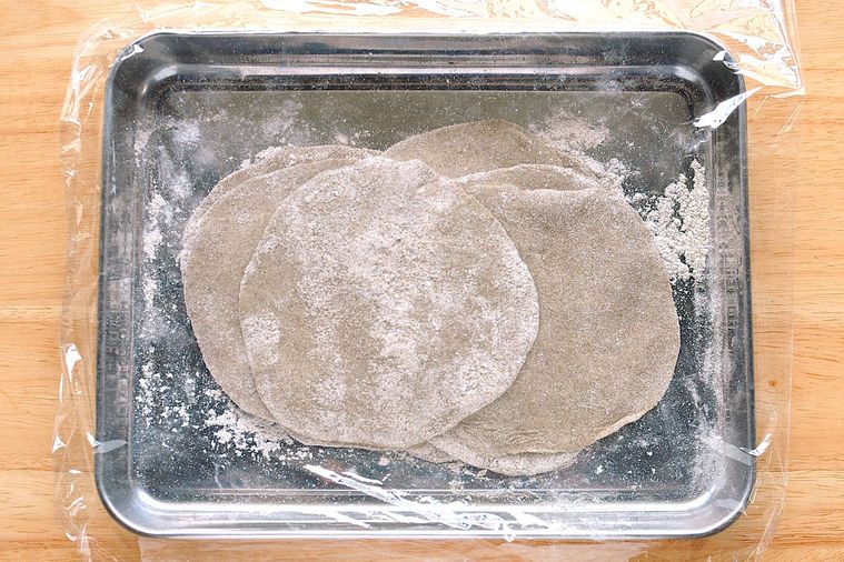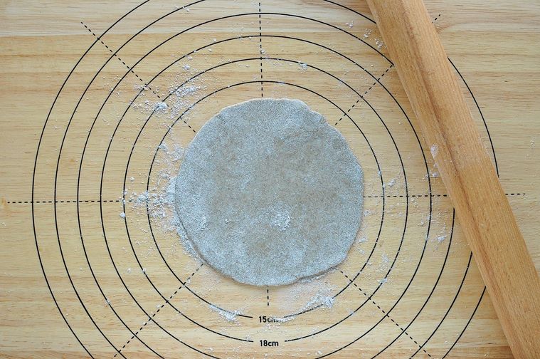 台に打ち粉(ライ麦粉:分量外)をして麺棒で10~12cm程度の円形にのばします。