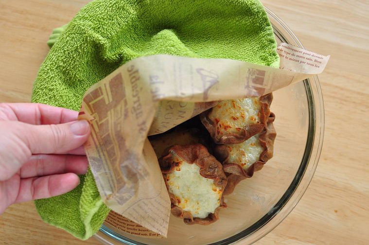 ボウルに重ねて入れいき、温かいうちにワックスペーパーとタオルを上からかけて覆います。30分ほど置いて皮がやわらかくなれば完成です。