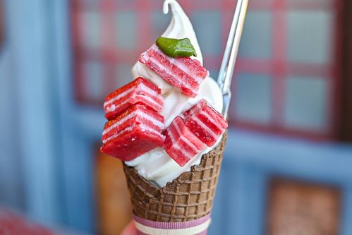 実際に注文すると、真っ白なソフトクリームにぶつ切りのまぐろが……と思いきや?