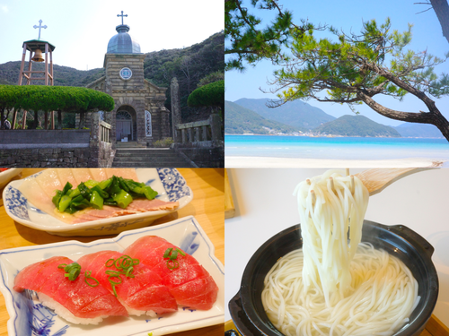 さらに、五島うどんや新鮮な魚介といったグルメも旅の楽しみ。