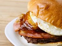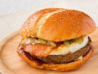 ベトナムのサンドイッチ「バインミー」をハンバーガーで再現したひと品。店内調理のクリスピーチキンにレバーペースト、なます、紫キャベツのマリネ、さらに旬の国産パクチーをたっぷりと挟んだバーガーです。