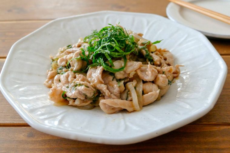 さらに、ひっくり返さないから失敗しにくいですよ。また、具材には豚こま肉を使うので、節約も叶います。大葉をたっぷり入れることで、簡単に作れるのに本格的な味わいに仕上がり、満足度の高いひと皿です。