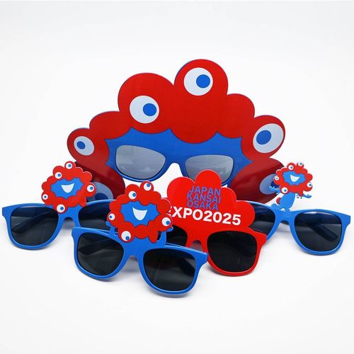 公式キャラクター「ミャクミャク」を大胆にデザインしたユニークなサングラス。さまざまなカラーやデザインがラインアップしていますよ。