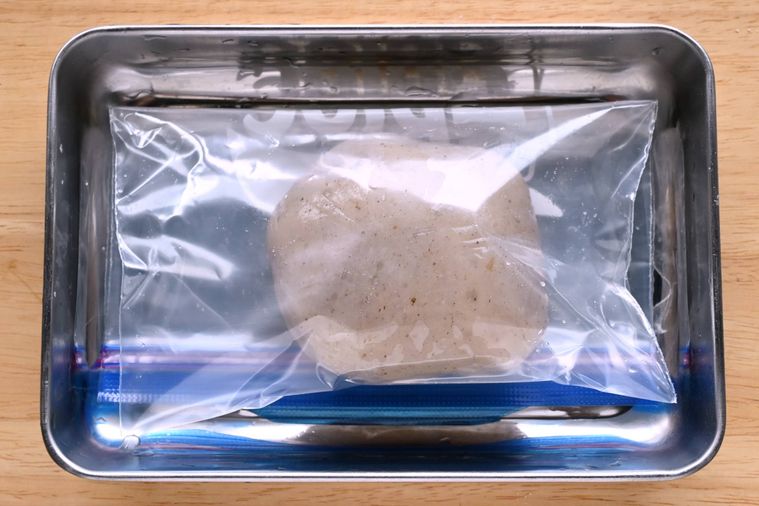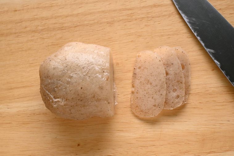 アク抜きをしたこんにゃくを冷凍庫でひと晩凍らせます。