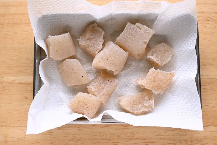 独特な弾力で噛むほどにジューシーな食べ心地はクセになってしまうかも。しょうゆ、酒、生姜、にんにくなどでしっかりと下味を付けているので、ごはんもお酒も進んでしまうこと請け合いですよ。