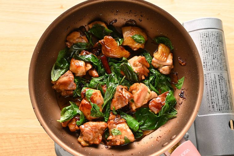 風味豊かな甘辛味でごはんが進む、台湾の鶏肉料理です。仕上げに「九層塔(きゅうそうとう)」と呼ばれる台湾バジルを加えて香りを立たせるのが最大の特徴ですが、本記事では手に入りやすいスイートバジルを使います。