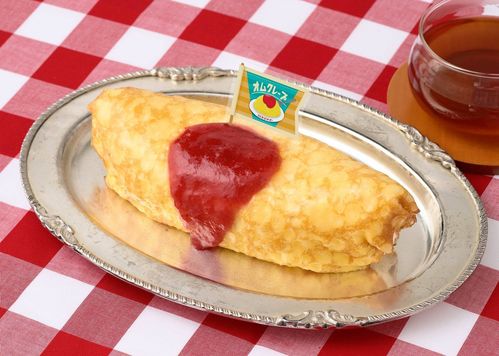 まるでオムライスな「クレープ」。ユニークな見た目のスイーツは、苺とバナナ、生クリームを包んだスポンジを、さらにクレープで包んで仕上げた逸品です。